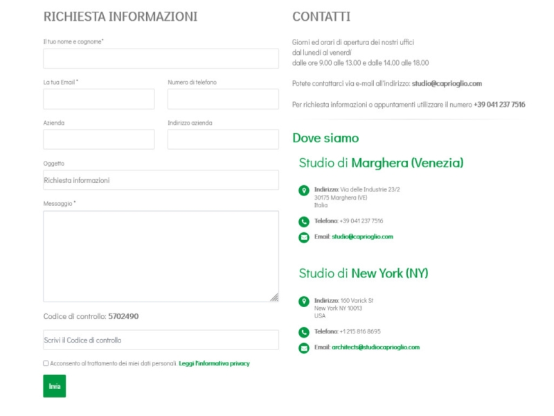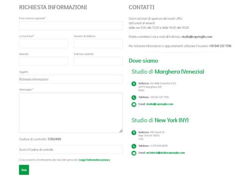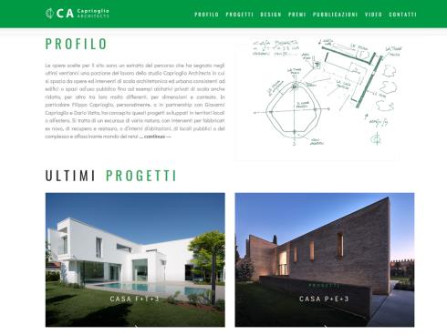 Lo Studio di architettura Caprioglio Associati viene fondato nel 1999 quale naturale prosecuzione, progresso ed unificazione degli studi veneti e friulani dell’architetto Giovanni Caprioglio che, con il figlio Filippo, dà corso ad una nuova realtà professionale legata non più solamente al territorio nazionale, ma che espande le proprie possibilità anche con esperienze internazionali e dell’industrial design. I valori che lo studio promuove sono quelli della cultura progettuale più avanzata, soprattutto per la sua attenzione alle reali esigenze della committenza e dell’ambiente storico e fisico ove si inserisce. Dai grandi complessi pubblici all’edilizia privata, il lavoro della Caprioglio Associati ha fissato, nel suo percorso temporale, episodi che hanno qualificato il territorio di appartenenza e arricchito la ricerca tecnica e formale di cui l’architettura contemporanea ha fatto la propria bandiera.Vincitore di numerosi premi internazionali, tra cui il prestigioso Lifestyle Luxury Award 2021 per la casa di lusso più bella d'Italia, assegnato a New York. La casa si trova a Mogliano Veneto ed è uno spazio che vive in simbiosi con un giardino esterno con piscina, vedere il link. Filippo Caprioglio è stato segnalato inoltre dagli advisor del Consiglio nazionale dell'Ordine degli architetti per il premio di architetto dell'anno per il 2021.